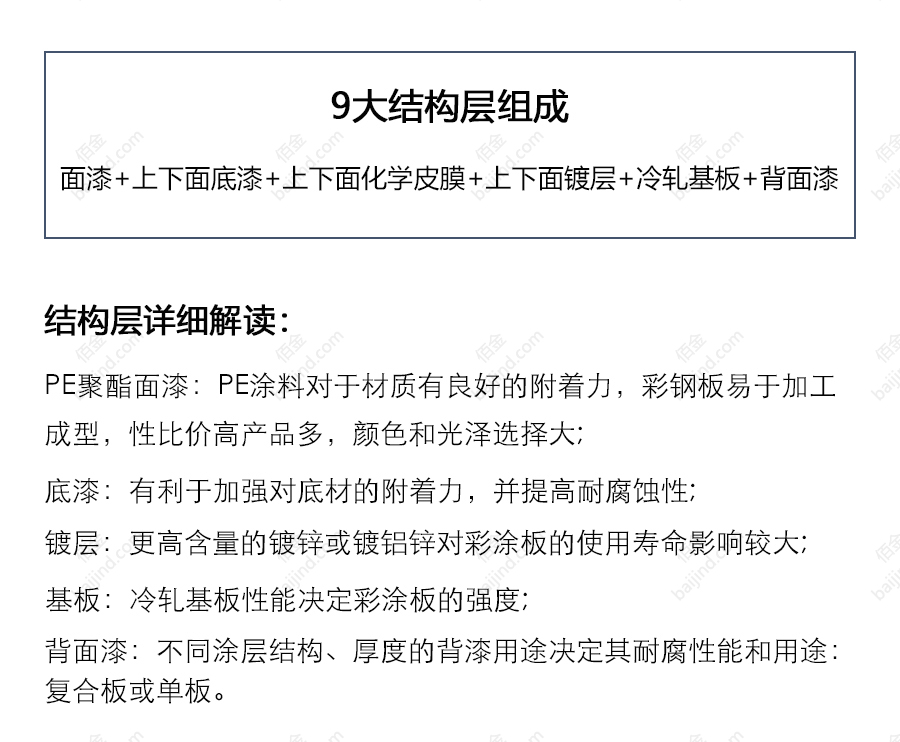 PE聚酯彩涂板附著力良好,在成型性和室外耐久性方面范圍較寬, 耐化學(xué)藥品性中等。廣泛應(yīng)用于普通工業(yè)廠房及倉儲(chǔ)物流庫房的圍護(hù)系統(tǒng)中。